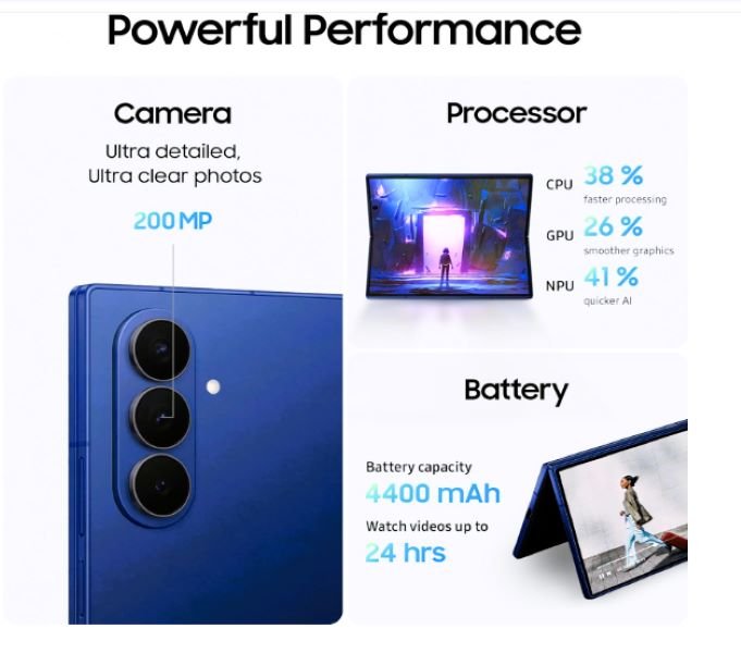 Galaxy Z Fold7 5G6.5″ / ~8.0″Snapdragon 8 Elite200MPThinnest, lightestBiggest camera & design refinement